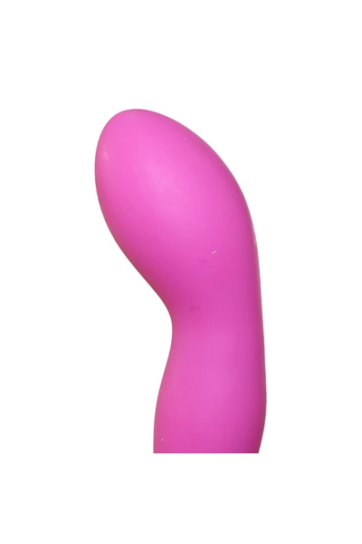 T-vormige gebogen G-spot vibrator met een nubby clit stimulator (lengte 6 cm, Ø 2,2-2,9 cm) en een anus stimulator (lengte 7,4 cm, Ø 1,2-1,7 cm) . Roze. Trilling in 3 stappen, regelbaar met een druk op de knop. Materiaal: siliconen. (Batterijen apart bestellen: 2 x AAA).