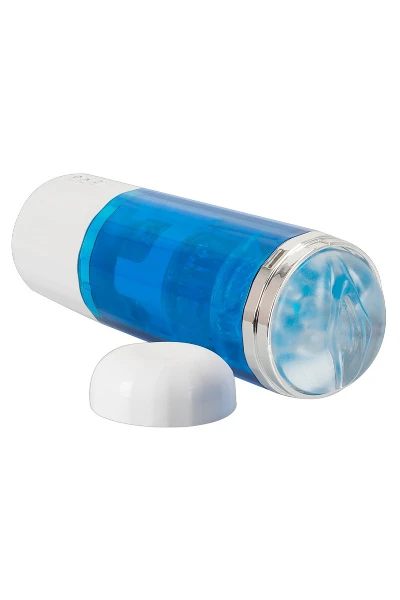 Oplaadbare 3-functie masturbator van You2Toys die rotatie en stoten in het onderste gedeelte combineert met vibratie in het bovenste gedeelte. De schacht van de penis wordt intensief gemasseerd en tegelijkertijd wordt het topje van de penis verwend met vibraties. 10 vibratie- en 5 rotatiestanden in beide richtingen, evenals de 1Â cm stuwfunctie, zorgen voor aangename afwisseling en kunnen gemakkelijk afzonderlijk worden bediend met een druk op de knop direct op het speeltje. De twee binnenhulzen zijn voorzien van ontelbare zachte massagenoppen en kunnen worden verwijderd voor een gemakkelijke reiniging. De vagina-look masturbator kan (stof)veilig en discreet worden opgeborgen met de bijgeleverde beschermkap. USB oplaadkabel inbegrepen.