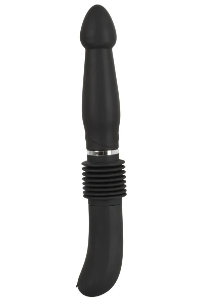 Deze zwarte anale vibrator heeft veel te bieden – er zit veel kracht verborgen in de uitpuilende schacht die een kegelvormige punt heeft. De schacht loopt ook taps toe naar de punt toe. Er zijn 7 vibratiestanden om uit te kiezen en een stuwkrachtfunctie in 3 snelheden. De stuwkrachtfunctie verlengt de vibrator tot 6 cm – keer op keer. De trillings- en stuwkrachtfunctie zijn met een druk op de knop in te stellen en apart te bedienen. Verder is de vibrator op te laden met de meegeleverde USB kabel.