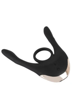 Couples Choice Multi-Function Couple’s Vibrator met (penis)ring en beweegbare vibro armen. 3 motoren – één in het midden en één in elke arm – zorgen voor 10 vibratiestanden in 3 snelheden, afzonderlijk te bedienen met de draadloze afstandsbediening – bereik 10 meter, perfect voor partner spel!