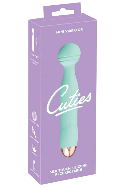 Groene mini vibrator met een spannende gegroefde textuur op de flexibele kop. Deze vibrator is van de tweede generatie Cuties. Met 7 verschillende vibratiestanden. Het kan worden opgeladen met de USB-kabel. Het is gemakkelijk te gebruiken en heeft een elegant ontwerp. Waterbestendig.