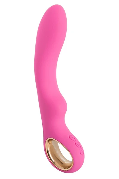 Licht gebogen vibrator met een grote (G-spot) kop en een uitgesproken golf aan de onderkant van de schacht voor specifieke clitorale / anale stimulatie. De 2 krachtige motoren, die afzonderlijk kunnen worden aangestuurd, zorgen met hun vibratiestanden voor afwisselend plezier. Er zijn 10 vibratiestanden en 5 snelheden per motor. De vibrator laat zich door de praktische ringvormige handgreep heel gemakkelijk sturen en controleren tijdens vaginale / anale stimulatie en tijdens het voorspel. De vibrator is bedekt met zachte siliconen die heerlijk aanvoelt op de huid. Hij kan worden opgeladen met de meegeleverde USB-kabel.