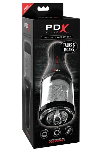 • Leveringsomvang: Elite Talk Dirty Rotobator masturbator van Pipedream Extreme Toyz. Oplaadbaar met de meegeleverde USB-kabel.
