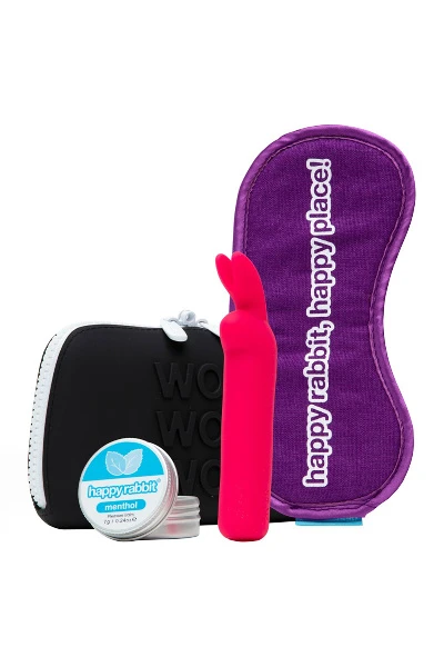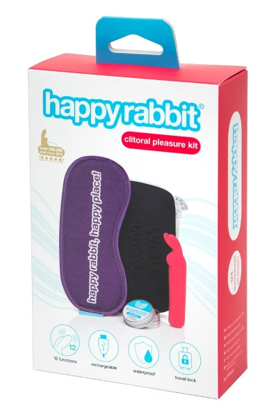clitoris plezier kit van happyrabbit bevat 1 x mini vibrator, 1 x menthol balsem, 1 x oogmasker en 1 x toybag.