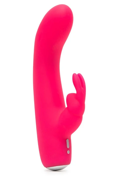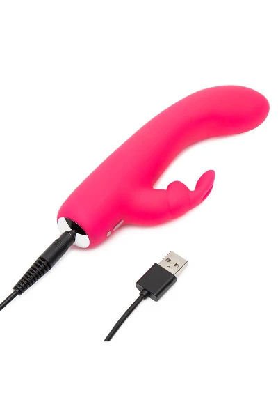 De kleine konijnenvibrator heeft een slanke schacht, een perfect gebogen G-spot tip en een konijnvormige clitorisstimulator. 12 vibratiestanden en reisvergrendeling. Waterbestendig. Oplaadbaar met de meegeleverde USB-kabel.
