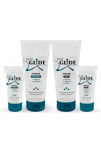 De glijmiddelen op waterbasis Premium en Premium Anal van Just Glide hebben een verbazingwekkende langdurige smering en voeden met hyaluronzuur en panthenol. Het hyaluronzuur is vochtinbrengend en zorgt ervoor dat de gel heerlijk zacht aanvoelt. De panthenol kalmeert de huid en creëert een barrière. Beide glijmiddelen zijn veganistisch, geur- en smaakloos. Premium Anal bevat ook siliconenolie die bijdraagt ??aan het extreem soepele gevoel en smering in het anale gebied. Beide smeermiddelen kunnen gemakkelijk worden afgewassen. Veilig te gebruiken met latex condooms.