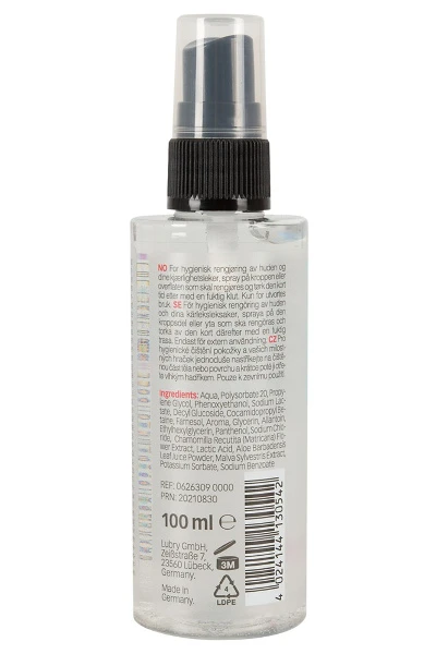 2in1 Clean van Just Play reinigt op milde wijze zowel de intieme zone als de speeltjes. De alcohol- en parfumvrije formule bevat extracten van heemst en kamille en huidverzorgende aloë vera. Zeer zuinig: opsproeien, kort laten inwerken en vervolgens afnemen met een vochtige, schone doek. Veganistisch. 100 ml.