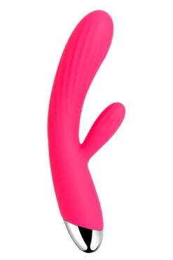 Ergonomisch gevormde rabbit vibrator met prominente stimulatie-groeven. De opwarmfunctie verwarmt Angel tot 38 C en zorgt voor een levendig en lichaamswarm gevoel. 2 motoren stimuleren afzonderlijk in de schacht en de clitorisstimulator. Stimuleert met 7 fluisterstille vibratiestanden in 5 verschillende intensiteiten. De extra SVAKOM Intelligent-modus imiteert de toenemende frequenties van echte seks naar de climax toe. Handig verstelbaar met een druk op de knop. Inclusief praktische opbergtas en USB-kabel om op te laden.