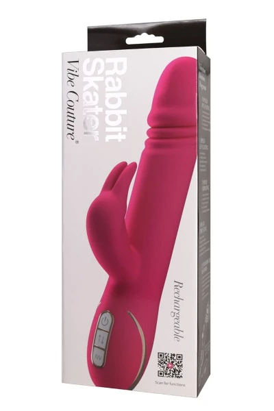 Deze prachtig vormgegeven roze rabbit vibrator zorgt voor puur genot. Het heeft een fluweelzacht oppervlak gemaakt van siliconen dat extreem realistisch aanvoelt. Hij ziet er niet alleen goed uit door zijn prachtige vorm en decoratieve zilverkleurige onderdelen, maar hij kan ook goed zijn werk doen! Er zit een motor in de kleine konijnvormige clitorisstimulator met neus en beweegbare oren. De motor zorgt voor krachtige trillingen (met 7 verschillende patronen). Het echte hoogtepunt zit echter iets verderop: de ronde G-spot-tip met daaronder stimulerende groeven heeft een geïntegreerde stuwkracht- en vibratiefunctie. De functies hebben drie snelheden en intensiteiten. Je kunt ook genieten van de Rabbit Skates in bad of onder de douche omdat hij waterdicht is! Een minnaar die verslavend kan worden!