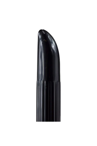 Zwarte gladde vibrator met gegolfde schacht en gebogen kegeluiteinde. Met vibraties met meerdere snelheden. Afmeting: 13 cm, Ø 2,5 cm. Materiaal: ABS. Batterij a.u.b. apart bestellen: 1 x AA.