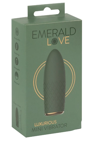 De mini vibrator Luxurious Mini Vibrator van Emerald Love heeft een prachtig design en heeft een uitgesproken diamanten textuur en ronde, zachte punt die perfect is voor spot-on stimulatie van genotsplekken (bijv. clitoris, tepel, testikel, perineumstimulatie). De 10 vibratiestanden zorgen voor afwisselend plezier en kunnen eenvoudig met een druk op de knop worden bediend. De mini vibrator kan ook onder water worden genoten omdat hij waterdicht is. De fluweelzachte textuur voelt heerlijk aan op de huid tijdens stimulatie en genot. Hij is op te laden met de meegeleverde USB-kabel,