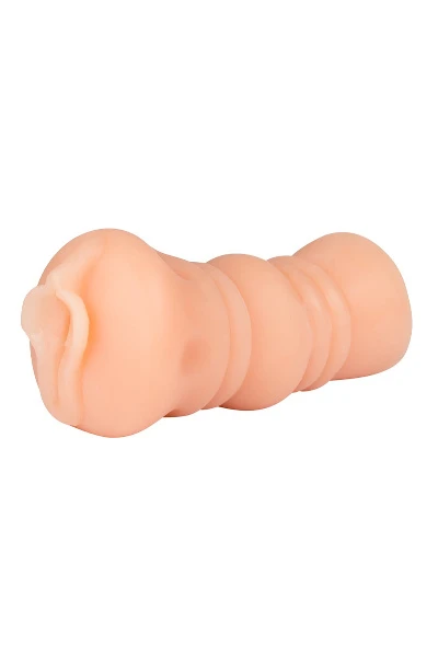 Huidkleurige masturbator in pussy-stijl, met uitgesproken schaamlippen. Groef binnenstructuur. Totale lengte ca. 15 cm, ظ flexibel. Materiaal: TPR.