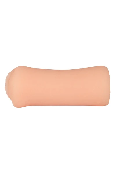 Kleine vagina masturbator met uitgesproken schaamlippen en clitoris. Met binnennoppen en groeven, beide zijden open. Zeer flexibel, past zich aan de penis aan. Huidkleurig. Lengte ca. 11Â cm. Glad buitenoppervlak. Materiaal: TPR.