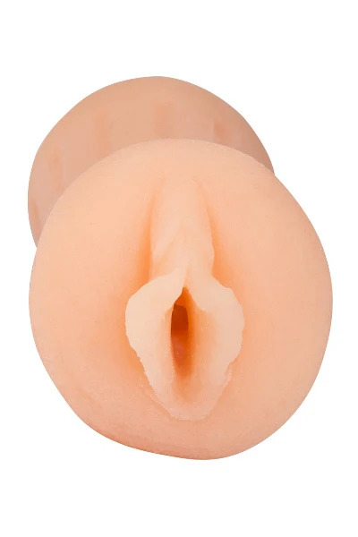 Kleine vagina masturbator met uitgesproken schaamlippen en clitoris. Met binnennoppen en groeven, beide zijden open. Zeer flexibel, past zich aan de penis aan. Huidkleurig. Lengte ca. 11Â cm. Buitenoppervlak met handige groeven. Materiaal: TPR.