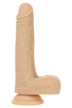 Flexibele natuurlijke vibrator 7,5″ Rotating & Thrusting Vibrating Dong van Naked Addiction in levensechte penis look met fijne adering en uitpuilende eikel. Met zuignap onder de grijpgrage testikels die stevig en stevig aan elk glad oppervlak blijven kleven voor hands-free plezier. De natuurlijke vibrator is ook compatibel met strap-ons en urinalen.