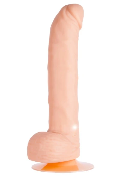 Deze natuurlijk ogende, huidkleurige vibrator is zeer indrukwekkend! Met enorme eikel, uitgesproken aderen, stimulerende gebogen punt, grote testikels en een praktische zuignap. Kies uit 10 verschillende standen met een druk op de knop – van zacht kietelen tot extreem krachtig. Er is echt voor ieder wat wils! Volledige lengte 22 cm, Ø 4 cm. Materiaal: ABS, siliconen. Batterijen a.u.b. apart bestellen: 2 x AA.