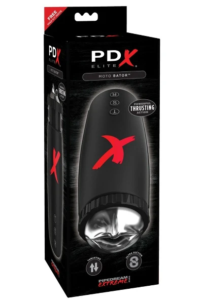 De innovatieve masturbator “Moto Bator” zorgt voor een intense zuigervaring vanwege het vacuüm dat kan worden versterkt met een druk op de knop. De stootfunctie heeft twee snelheden en zorgt voor ultiem genot. Beide functies kunnen samen of afzonderlijk worden bediend. Schuif de gladde lippen naar binnen en geniet van het 10 cm lange plezierkanaal dat met zijn stimulerende puntjes plezier geeft.