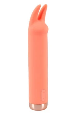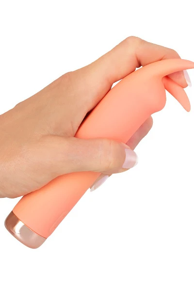 Pastel mooie mini trickle vibrator van peachy! met flexibele vibro-oortjes op de top – past in elke broekzak! 10 vibratiestanden bieden variatie in vaginaal en anaal spel, evenals stimulatie van externe genotspunten voor gevarieerd plezier en kunnen gemakkelijk op en neer worden bediend met een druk op de knop. Het hoogwaardige siliconenmateriaal met soft touch textuur zorgt voor een zeer aangenaam huidgevoel tijdens het spelen en verwennen. Oplaadbaar – USB oplaadkabel inbegrepen.