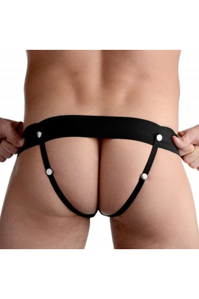 Tussen de ballen en langs de dijen loopt een elastische band, zodat de kont open blijft voor meer speelmogelijkheden. De dikke elastische tailleband is rekbaar genoeg om in de meeste lichaamsmaten en vormen te passen voor meer veelzijdigheid en comfort. Het niet-poreuze, lichaamsveilige materiaal is ftalaatvrij en bevat geen schadelijke bacteriën.