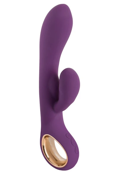 Deze flexibele vibrator met clitorisstimulator masseert tegelijkertijd intensief de vagina, G-spot en clitoris. Er zit een krachtige motor in de schacht en ook een in de clitorisstimulator. De 2 krachtige motoren, die afzonderlijk kunnen worden aangestuurd, zorgen met hun vibratiemodi en snelheden voor divers plezier. Er zijn 10 vibratiestanden en 5 snelheden per motor. Met de praktische ringvormige handgreep kan de vibrator heel gemakkelijk worden geleid en bediend. Het licht gebogen design van de vibrator met zijn twee grote, zachte stimulerende koppen en het huidvriendelijke soft-touch oppervlak zorgen voor heerlijk genot. Het voelt ook geweldig aan op de huid. Hij kan worden opgeladen met de meegeleverde USB-kabel.