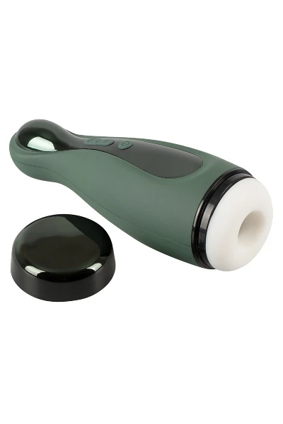 Handige, slanke masturbator met 2 functies van Rebel die zuigkracht en vibratie combineert. 6 vibratiestanden en 3 zuigstanden zorgen voor een plezierige afwisseling en kunnen afzonderlijk worden bediend met een druk op de knop direct op het speeltje.