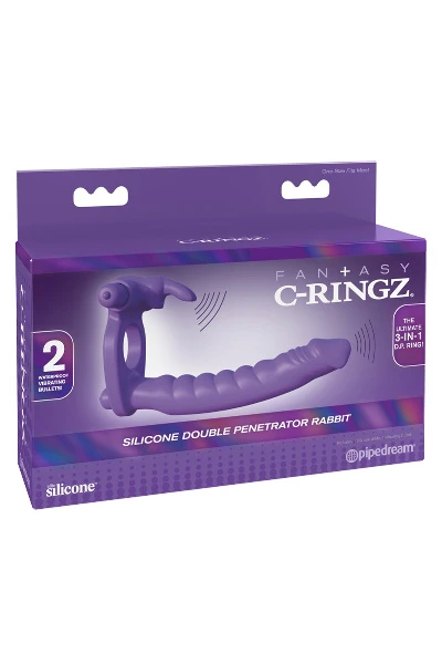 Vibro-cockring en konijnvormige clitorisstimulator met beweegbare, kleine oortjes. 1 flexibele anaaldildo met stimulerende groeven en uitpuilende eikel is ook geïntegreerd in de cockring. De dildo en het konijn-opzetstuk hebben beide een verwijderbare vibro-bullet die één snelheid heeft – gecontroleerd met een druk op de knop. De vibro-ring stimuleert tegelijkertijd de clitoris, vagina en anus. Voor een explosie van vrouwelijk genot! 2 x AAA-batterijen a.u.b. apart bestellen!