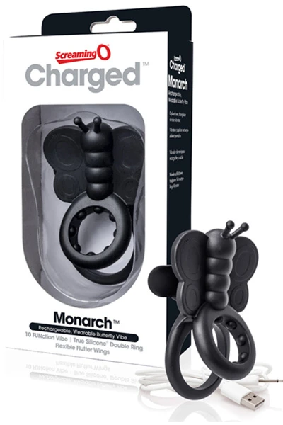 Charged Monarch is een oplaadbare draagbare vlinder vibrator in compacte vorm dat surround sound vibraties geeft. De Charged Monarch heeft diepe, rommelende vibraties met 10 functies en kan meer dan 60 minuten mee op een volle batterij. Deze siliconen penisring is gemaakt met een dubbele ring – de voorste ring voor de penis en de achterste ring voor de penis en testikels – om de gebruiker heerlijke sensaties te geven terwijl de ring goed op z’n plaats blijft zitten.