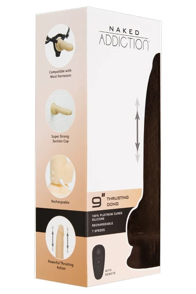 • Leveringsomvang: 1 x oplaadbare stootdildo 9″ Thrusting Dong van Naked Addiction inclusief USB-oplaadkabel en opbergtas.