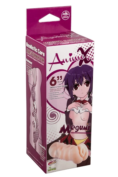 Huidkleurige, vagina-vormige masturbator met realistische schaamlippen. Nuby en gedraaid van binnen. Beide kanten open. Totale lengte ca. 15 cm, ØÂ flexibel. Materiaal: TPR.
