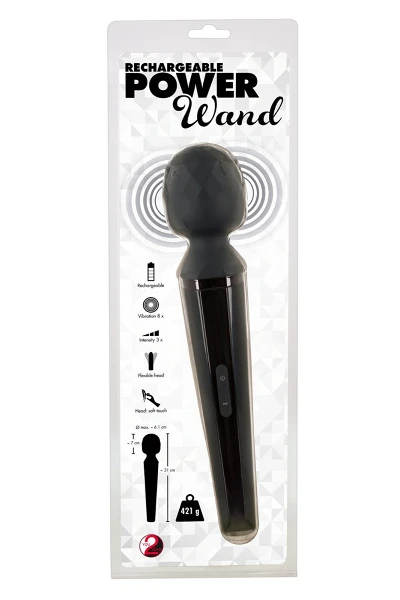 Oplaadbare massagestaaf met een grote, beweegbare kop van siliconen. De 24 vibratiestanden zorgen voor sensuele momenten van plezier. Eenvoudig te bedienen met een druk op de knop. Wordt geleverd met USB-oplaadkabel.