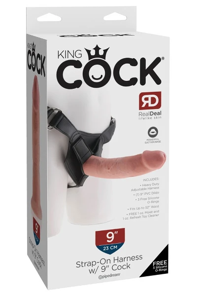 Voorbinddildo 22 cm blank inclusief harnas
