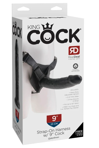 Voorbinddildo 23 cm zwart inclusief harnas